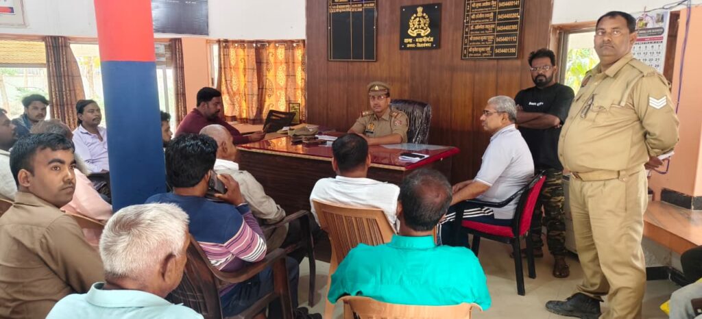 प्रशासन की सख्त हिदायत: गाइडलाइन्स का पालन अनिवार्य** अपर पुलिस अधीक्षक श्री प्रशांत कुमार प्रसाद के निर्देशन एवं क्षेत्राधिकारी डुमरियागंज श्री बृजेश कुमार वर्मा के पर्यवेक्षण में आयोजित इस बैठक की अध्यक्षता थानाध्यक्ष बृजेश सिंह ने की। गोष्ठी में क्षेत्र के ग्राम प्रधानों, संभ्रांत व्यक्तियों, दोनों समुदायों के धर्मगुरुओं और विशेष रूप से डीजे संचालकों को बुलाया गया था।